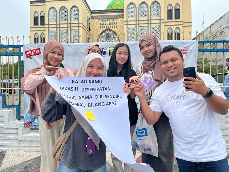 Melalui kegiatan ini, para mahasiswa membagikan bingkisan kecil sebagai simbol kepedulian serta memberikan ruang bagi masyarakat untuk berbagi cerita secara tertulis.