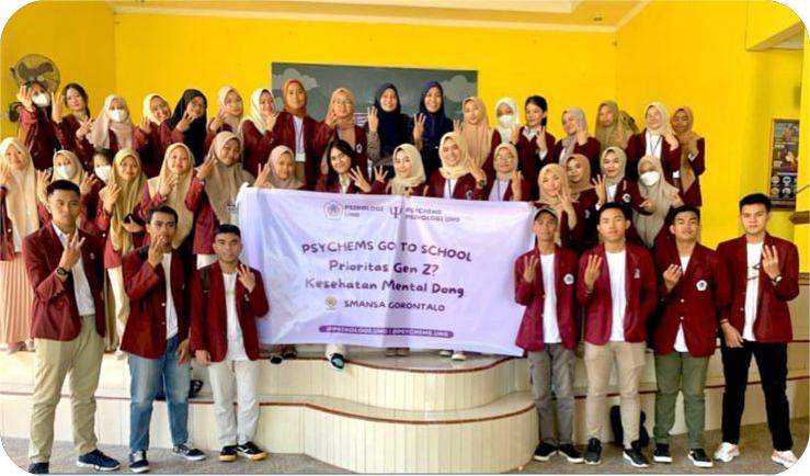Gorontalo, 8 Oktober 2022 — Angkatan pertama Program Studi Psikologi Universitas Negeri Gorontalo (UNG) menggelar kegiatan bertajuk “Hari Kesehatan Mental” dengan tema “Psychems Go to School: Prioritas Gen Z? Kesehatan Mental Dong!” pada Kamis, 13 Oktober 2022. Kegiatan ini dilaksanakan secara serentak di dua lokasi, yaitu SMA Negeri 3 Kota Gorontalo dan SMA Negeri 1 Kota Gorontalo.