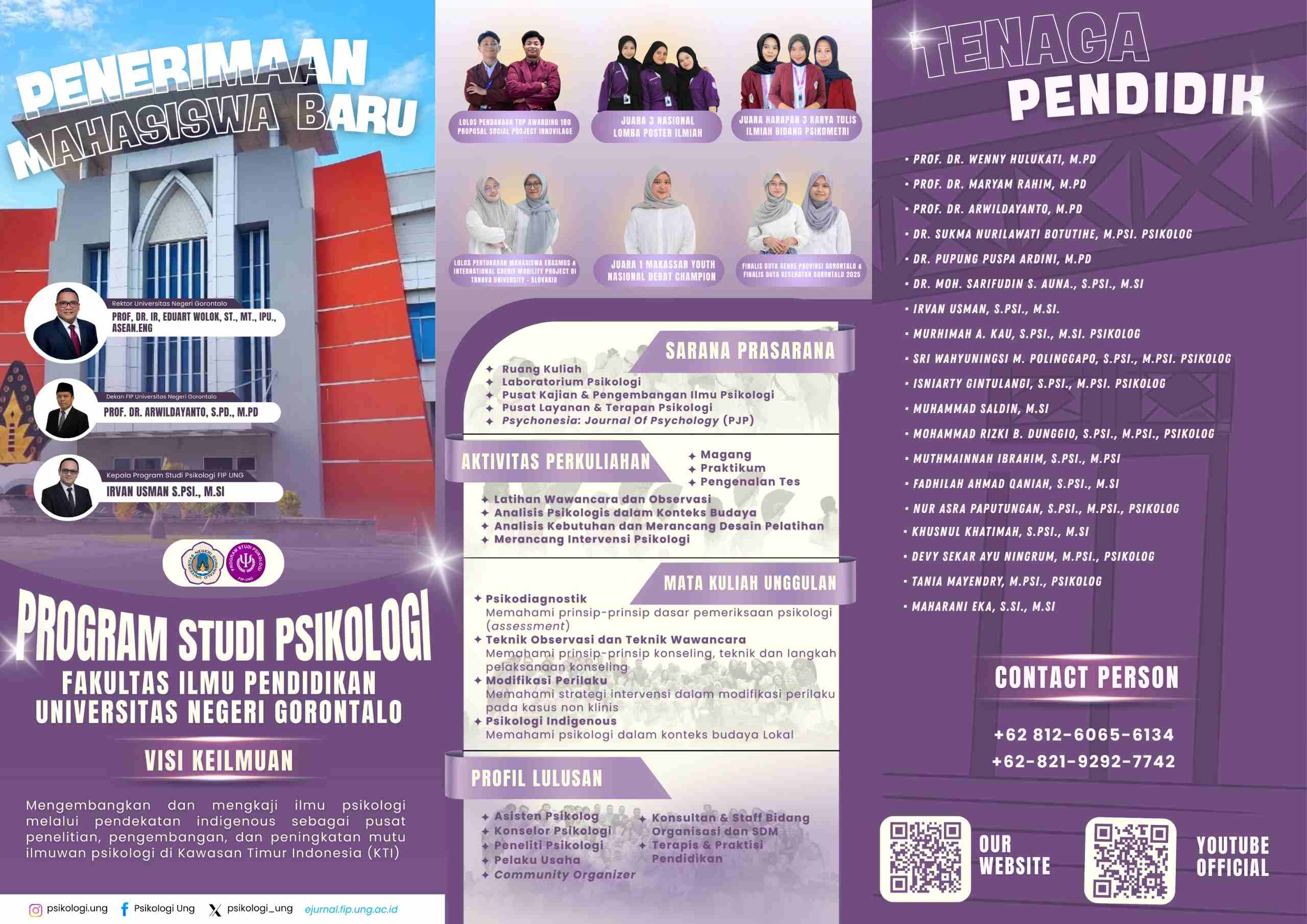 Program Studi Psikologi FIP UNG mengundang para calon mahasiswa yang bersemangat, berpikir kritis, dan peduli terhadap sesama untuk menjadi bagian dari perjalanan akademik yang inspiratif dan bermakna melalui jalur SNBT.